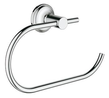 With its sleek lines and curved shape, the GROHE Essentials Authentic toilet roll holder will fit perfectly into your classic bathroom. Made with proven GROHE quality, the sparkling chrome finish will retain its original shine for years to come.