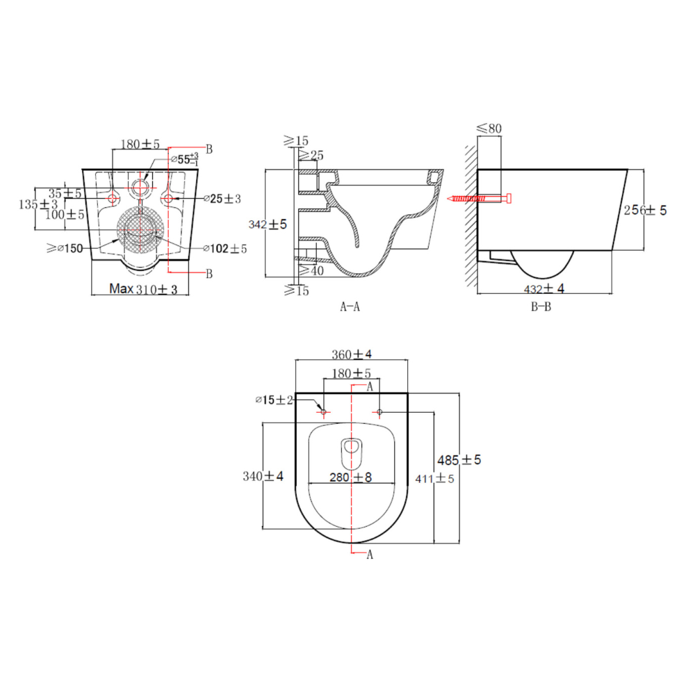 Features of Swiss Aqua Technologies Rimless Wall-Hung Toilet with Invisible Fixings and Soft-Close Seat (SATBRE010RREXPBKM):